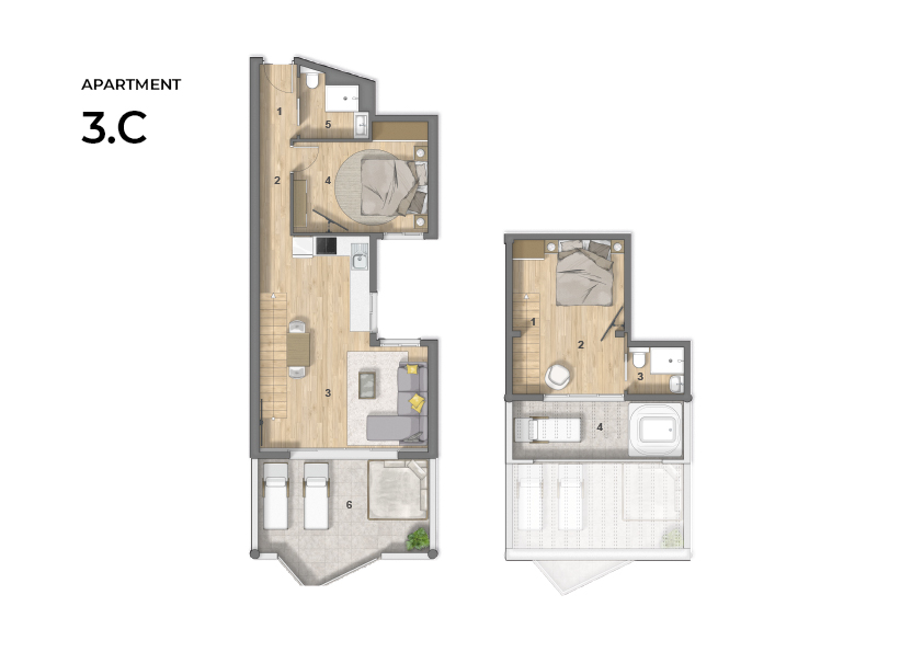 beige porcelain stoneware ceramic tile, combined with natural porcelain stoneware tiles imitating wood.